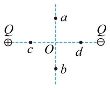 24. Garis medan listrik digunakan untuk membandingkan kekuatan medan secara visual dan mudah di berbagai titik dalam medan listrik. Gambar A adalah jumlah yang sama dari muatan titik yang berbeda untuk membentuk medan listrik garis medan listrik, Gambar B adalah beberapa titik di lapangan: $O$ adalah titik tengah garis muatan, $a , b$ adalah garis tegak lurus pada simetri relatif $O$ dua titik, $c , d$ adalah garis pada simetri relatif $O$, $O$, $O$, $O$, $a , b$ adalah medan medan listrik. INLINE_FORMULA_3]] adalah dua titik simetri pada garis terhadap $O$. maka