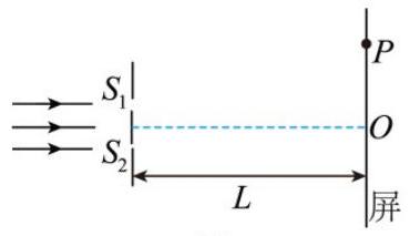 - D. D. Apabila dua celah disinari, jika perbedaan jarak yang ditempuh oleh cahaya dari celah ${ } ^ { S _ { 1 } , S _ { 2 } }$ ke titik $P$ pada layar adalah kelipatan ganjil dari setengah panjang gelombang, maka akan terdapat garis terang pada titik $P$.