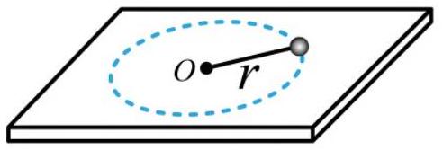 如图所示,小球在细绳牵引下,在水平光滑桌面上以角速度 $\omega$ 做半径为 $r$ 的匀速圆周运动,小球的线速度大小为