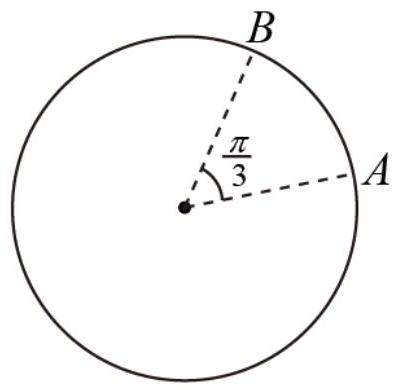 如图所示,一质点花了 20 s 的时间沿圆形轨道从 $A$ 点运动到 $B$ 点,质点与圆心的连线在这段时间内转过的角度为 $\frac { \pi } { 3 }$ ,该过程中质点可以看成做匀速圆周运动,质点的角速度为( )
