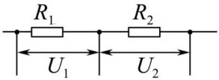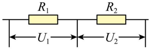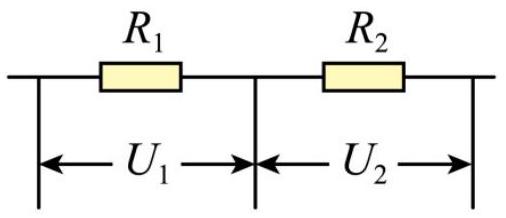 如图所示,电阻 $R _ { 1 } , R _ { 2 }$ 串联接入电路,已知 $R _ { 1 } : R _ { 2 } = 1 : 2$ ,则 $U _ { 1 } : U _ { 2 }$ 为