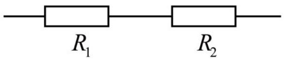 如图,电阻 $R _ { 1 } , R _ { 2 }$ 串联在电路中,已知 $R _ { 1 } = 1 \Omega , R _ { 2 } = 2 \Omega , R _ { 1 } , R _ { 2 }$ ,两端的电压分别为 $U _ { 1 } , U _ { 2 }$ ,通过的电流分别为 $I _ { 1 } , I _ { 2 }$ ,则