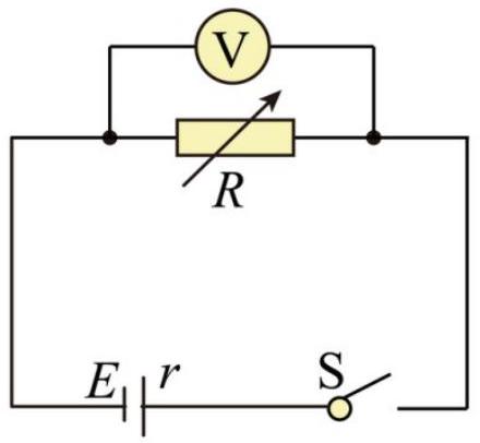 电源,电阻箱,电压表与开关连接成如图所示的电路.闭合开关 S 后,电压表示数为 2.00 V .当电阻箱接入电路的阻值 $R = 2.0 \Omega$ 时,通过电阻箱的电流 $I$ 为()