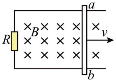 如图所示,水平放置的平行金属导轨的两端接有电阻 $R$ ,导线 $a b$ 能在框架上无摩擦地滑动,匀强磁场垂直穿过框架平面,当 $a b$ 匀速向右移动时,以下说法中错误的是