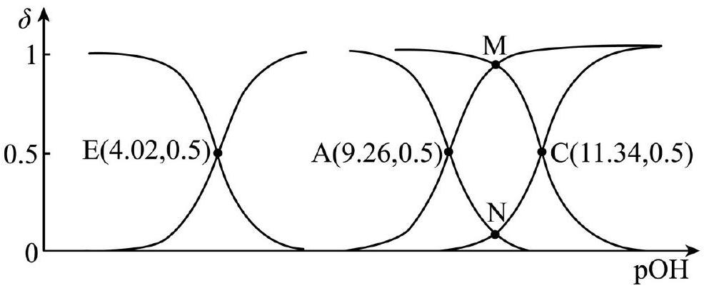 - D. D. 若 $\mathrm { M } 、 \mathrm {~N}$ 处对应 pH 相等,则 pH 为 3.70
