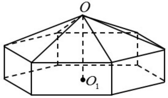 16.现有一个帐篷,它下部分的形状是高为 1 m 的正六棱柱,上部分的形状是侧棱长为 3 m的正六棱雉(如图所示)当帐篷的体积最大时,帐篷的顶点 $O$ 到底面中心 ${ } ^ { O } { } _ { 1 }$ 的距离为