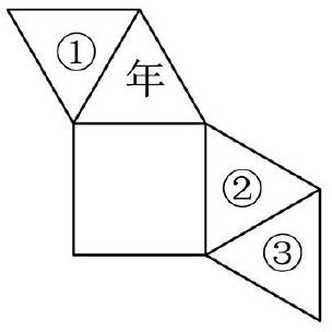 17.某人用如图所示的纸片,沿折痕折后粘成一个四棱锥形的"走马灯",正方形做灯底,且有一个三角形面上写上了"年"字,当灯旋转时,正好看到"新年快乐"的字样,则在(1)、(2)、 (3)处应依次写上