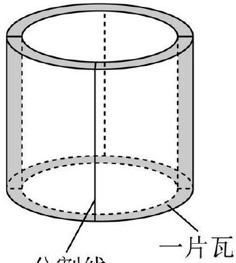 26 .《天工开物》是我国明代科学家宋应星所著的一部综合性科学技术著作,书中记载了一种制造瓦片的方法.某校高一年级计划实践这种方法,为同学们准备了制瓦用的粘土和圆柱形的木质圆桶,圆桶底面外圆的直径为 20 cm ,高为 20 cm 。首先,在圆桶的外侧面均匀包上一层厚度为 2 cm 的粘土,然后,沿圆桶母线方向将粘土层分割成四等份(如图),等粘土干后,即可得到大小相同的四片瓦.每位同学制作四片瓦,全年级共 500 人,需要准备的粘土量(不计损耗)与下列哪个数字最接近。(参考数据:$\pi \approx 3.14$ )  分割线