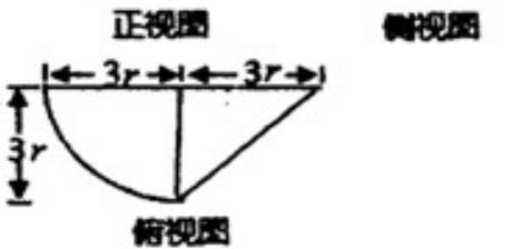 34.某几何体的三视图如图,其正视图中的曲线部分为半个圆弧,则该几何体的表面积为( ).    做視图