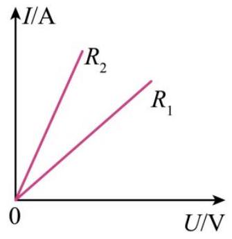 2.如图为电阻 $R _ { 1 } 、 R _ { 2 }$ 的 $I - U _ { \text {图像,把 } } R _ { 1 } 、 R _ { 2 }$ 并联接入电路中,通过它们的电流大小分别为 ${ } ^ { I _ { 1 } } 、 I _ { 2 }$ ,则下列说法正确的是( )