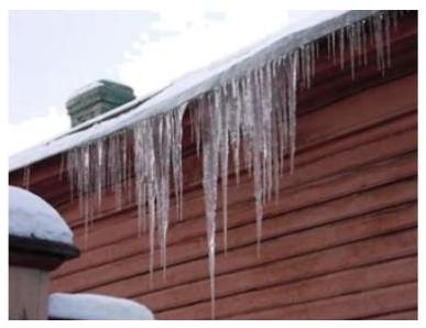 32 .严冬屋檐下有冰凌,冰凌可看成质点(如图)。人在屋檐下行走要防止冰凌砸到头部,因此一定要有安全防范意识。假设冰凌做自由落体运动,冰凌最后 1 s 内下落的高度为 25 m ,重力加速度大小 $g = 10 \mathrm {~m} / \mathrm { s } ^ { 2 }$ ,则冰凌自由下落的总时间为