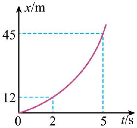 34.有经验的司机远远看见红灯并不紧急刹车而是调整油门缓慢减速,使汽车赶到路口时正好绿灯亮起,当绿灯亮起时,司机控制油门使汽车做匀加速直线运动,以开始加速时作为计时起点, $0 \sim 5 \mathrm {~s}$ 内汽车的 $x - t$ 图像如图所示, 6 s 后汽车保持 6 s 末的速度做匀速直线运动。下列说法正确的是( )
