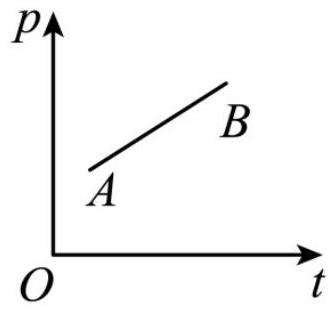 一定质量的理想气体的 $p - t$ 图像如图所示,在状态 $A$ 变化到状态 $B$ 的过程中,体积( )