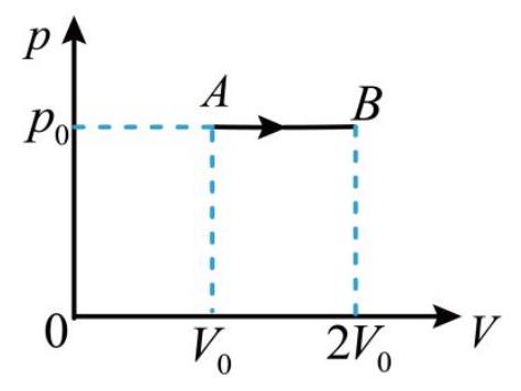一定质量的理想气体从状态 $A$ 变化到状态 $B , p - V$ 图像如图所示.该气体在此过程中