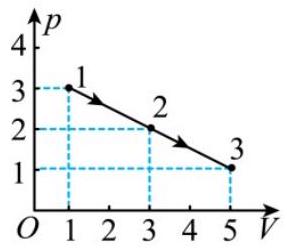 一定质量的理想气体,经历了如图所示 $1 \rightarrow 2 \rightarrow 3$ 状态变化的过程,则三个状态的热力学温度之比是( )