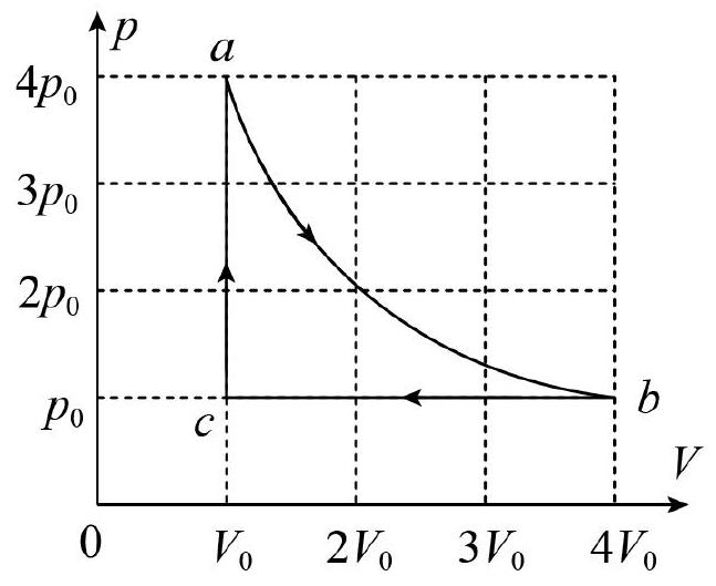 如图所示,一定质量的理想气体经历的状态变化为 $a \rightarrow b \rightarrow c \rightarrow a$ ,其中纵坐标表示气体压强 $p$ ,横坐标表示气体体积 $V , a \rightarrow b$ 是以 $p$ 轴和 $V$ 轴为渐近线的双曲线.则下列结论正确的是
