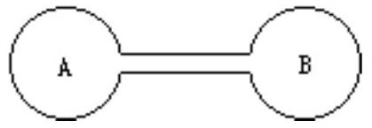 如图所示,A,B 两容器容积相同,用细长直导管相连,二者均封入压强为 P,温度为 T 的一定质量的理想气体,现使 A 内气体温度升温至 $T ^ { \prime }$ , B 内气体温度保持不变,设稳定 后 A 容器的压强为 $P ^ { \prime }$ ,则