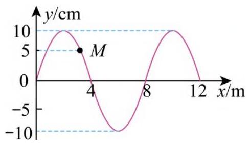 10.图甲是一列简谐横波在某时刻的波形图,质点 $M 、 N 、 P 、 Q$ 分别位于介质中 $x = 3 \mathrm {~m} 、 x = 4 \mathrm {~m} 、 x = 5 \mathrm {~m} 、 x = 10 \mathrm {~m}$ 处。该时刻横波恰好传播至 $P$ 点,图乙为质点 $M$ 从该时刻开始的振动图像,下列说法正确的是  甲  乙