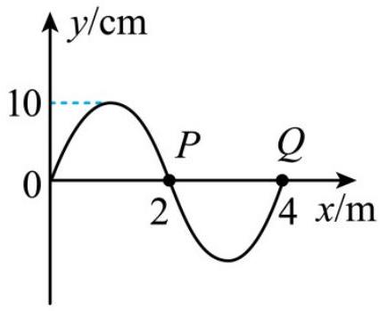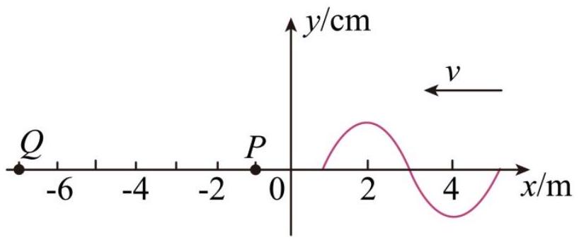 40.一列简谐横波向 $x$ 轴负方向传播,在 $t = 0$ 时的波形如图所示,该时刻波刚好传播到 $x = 1 \mathrm {~m}$ 处,$P 、 Q$ 两质点的平衡位置的坐标分别为 $( - 1,0 ) \quad ( - 7,0 )$ 。已知 ${ } ^ { t = 0.6 \mathrm {~s} }$ 时,质点 $P$第二次出现波谷,则下列说法正确的是  《2025年10月29日高中物理作业》